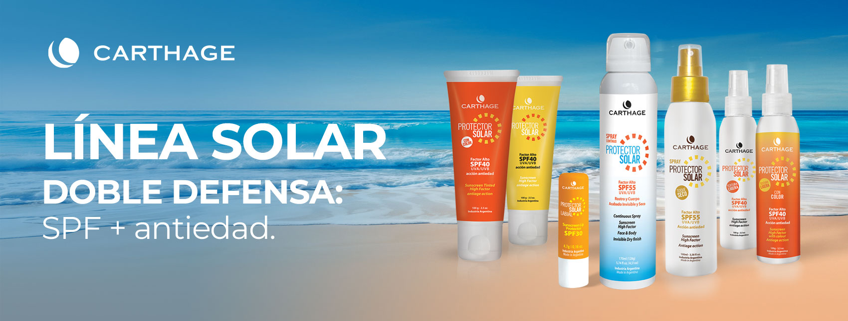 Carthage Línea Solar fue desarrollada para abordar este proceso desde una doble defensa: protección solar de amplio espectro frente a rayos UVA y UVB, y cuidado antiedad orientado a preservar la integridad cutánea.