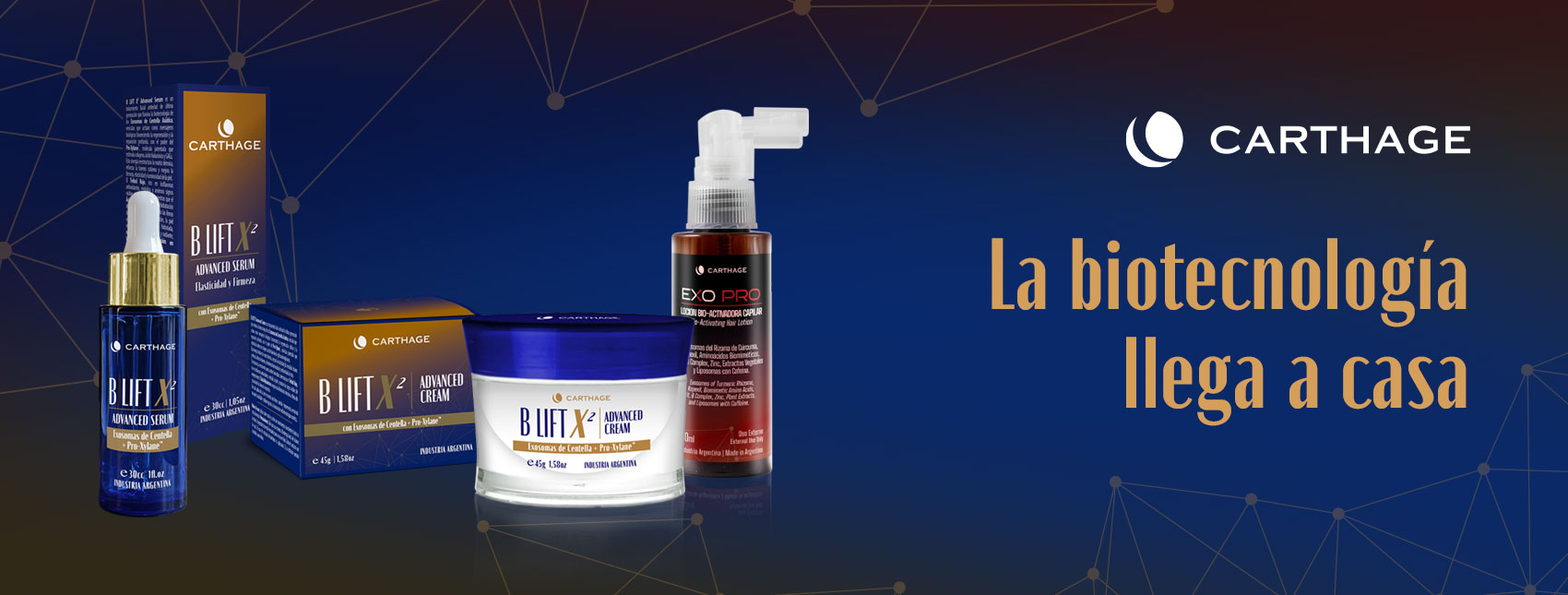 La ciencia que transformó la estética profesional ahora da un paso más allá. Carthage inaugura una nueva etapa en el cuidado domiciliario con dos innovaciones biotecnológicas que trasladan la eficacia del gabinete a la rutina diaria.